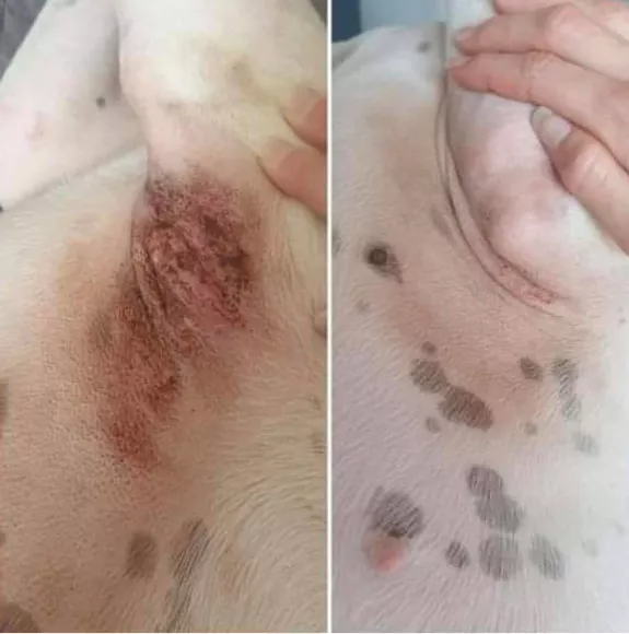 Ne pas utiliser sur la truffe, le museau, autour des yeux, des oreilles, au niveau de la gueule et des zones génitales/anales. Privilégiez le baume Peau de pêche pour toutes ces zones sensibles !