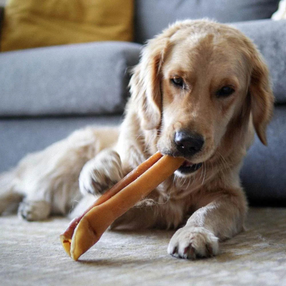 La mastication des rouleaux de peaux de porc aide à réduire la plaque et le tartre, favorisant ainsi une meilleure santé bucco-dentaire pour votre chien. - Satisfait le besoin naturel de mâcher 🐕